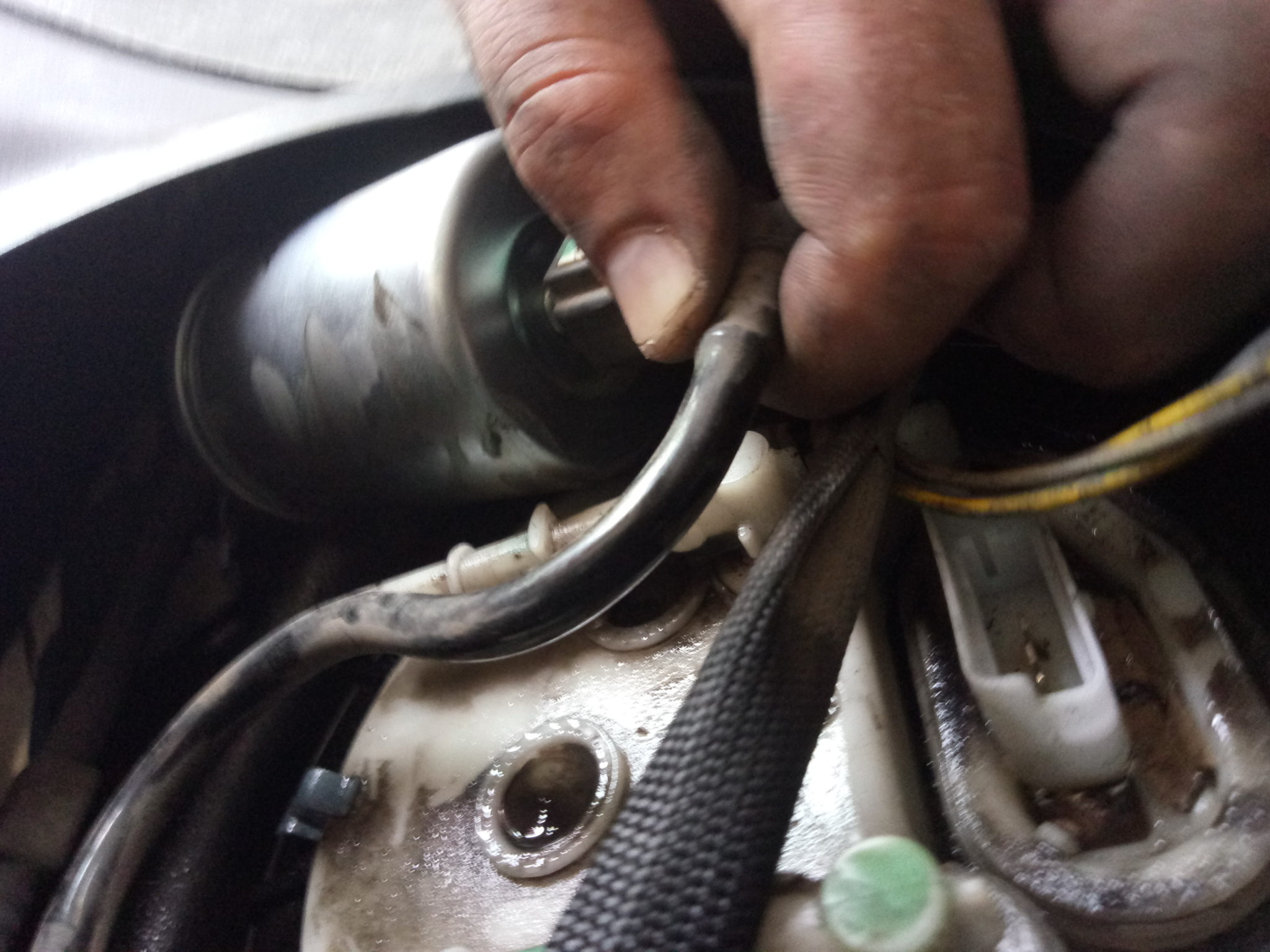 מסירים את צינורות הדלק תוך כדי שימת לב לכיוונים הקיימים (הפילטר חד כיווניועליו חץ לכיוון המתאים). הצינורות משתחררים עי לחיצה על הלחצן.