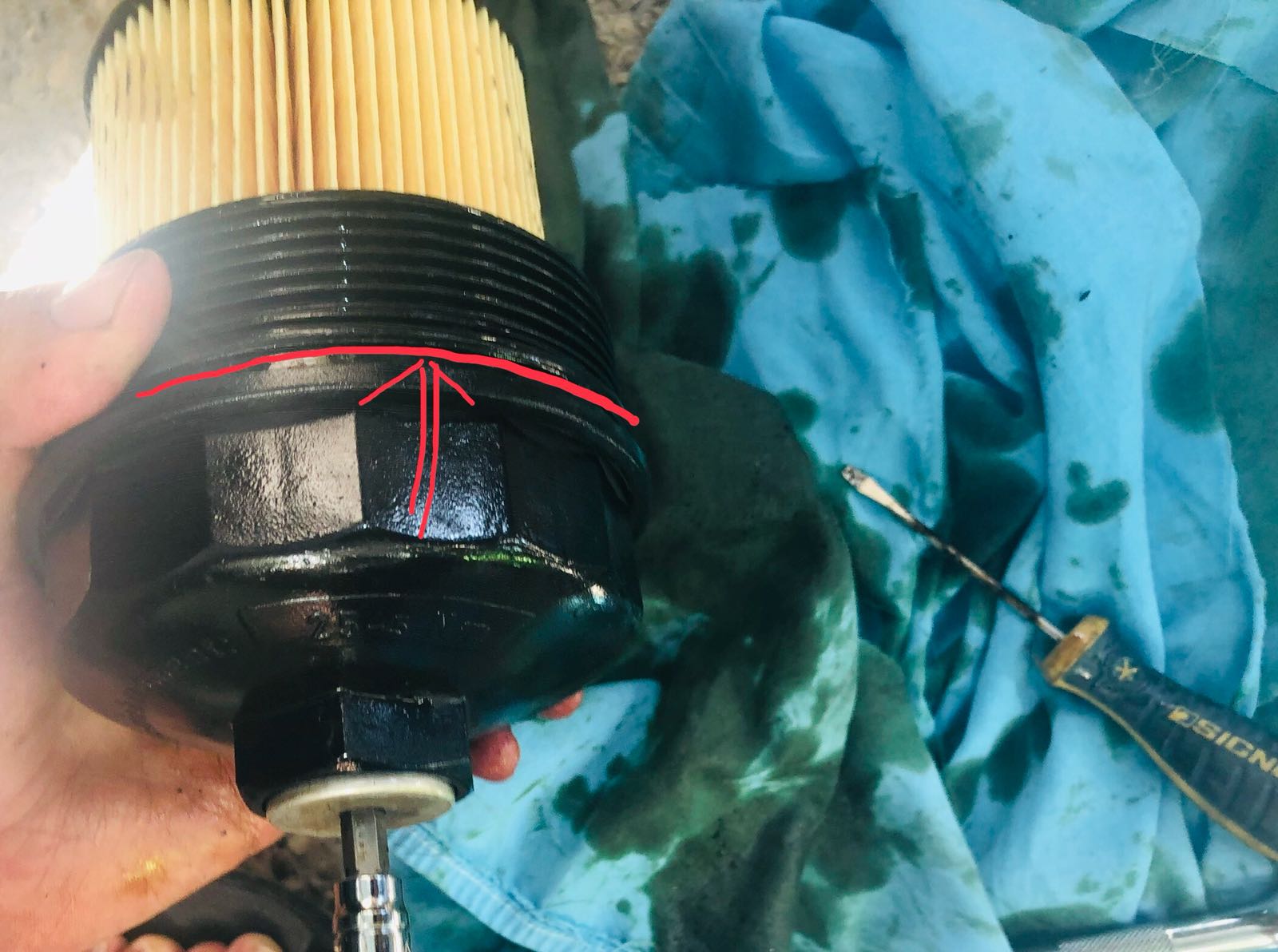 לאחר מכן, לפתוח את בית פילטר השמן באמצעות בוקסה 36 מ"מ + מאריכים כיוון שבית הפילטר נמצא במיקום גבוה.
