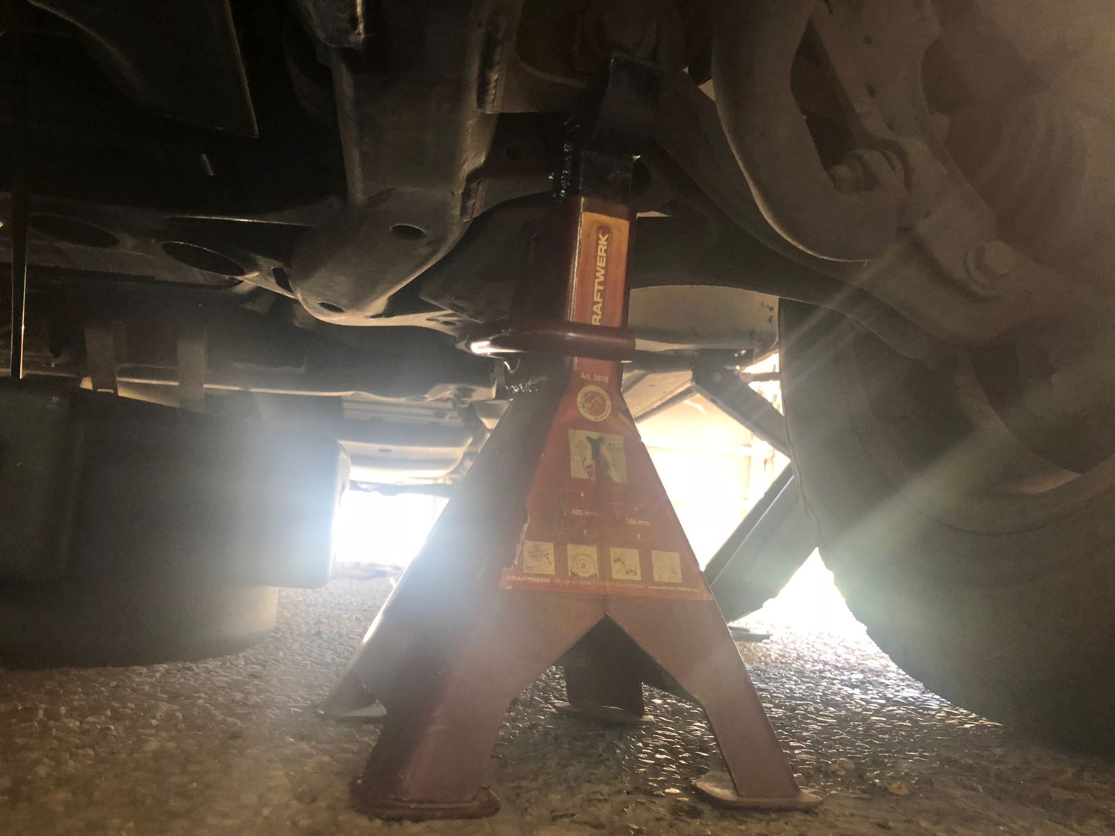 1. הרמת הרכב עם ג׳ק (עדיף מצד שמאל של הרכב) ואבטחה עם בוק.