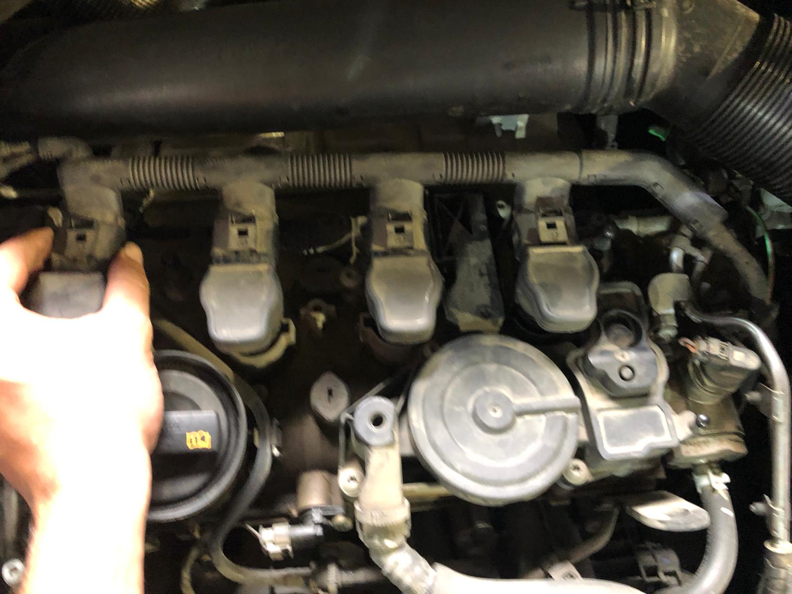 1. פתיחת מכסה תא מנוע, סלילי ההצתה ממוקמים מתחת למכסה הפלסטיק.