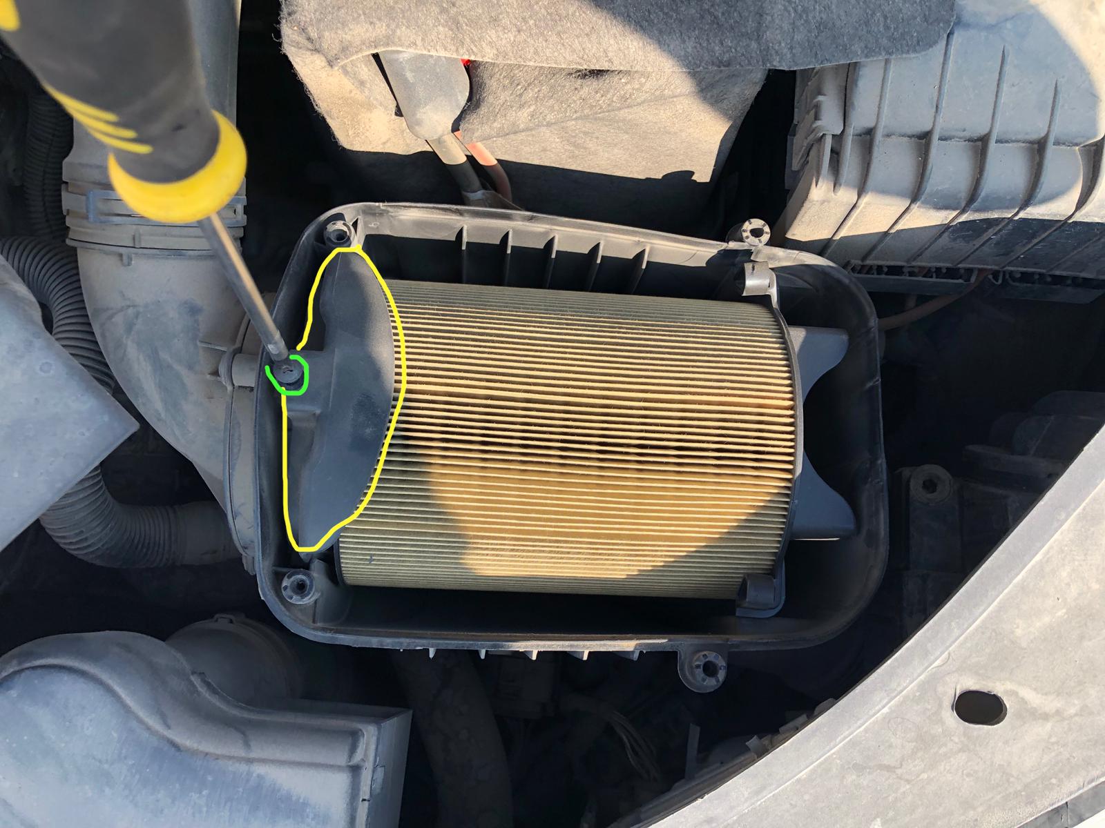 1. בית פילטר האוויר ממוקם בקדמת תא המנוע וסגור ע"י 4 ברגים.
