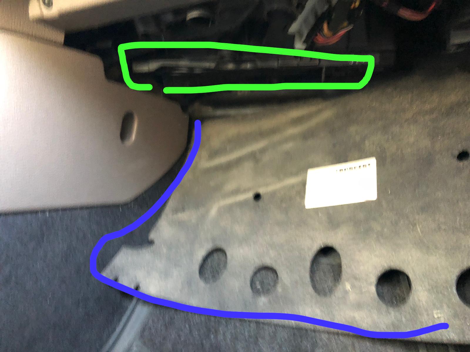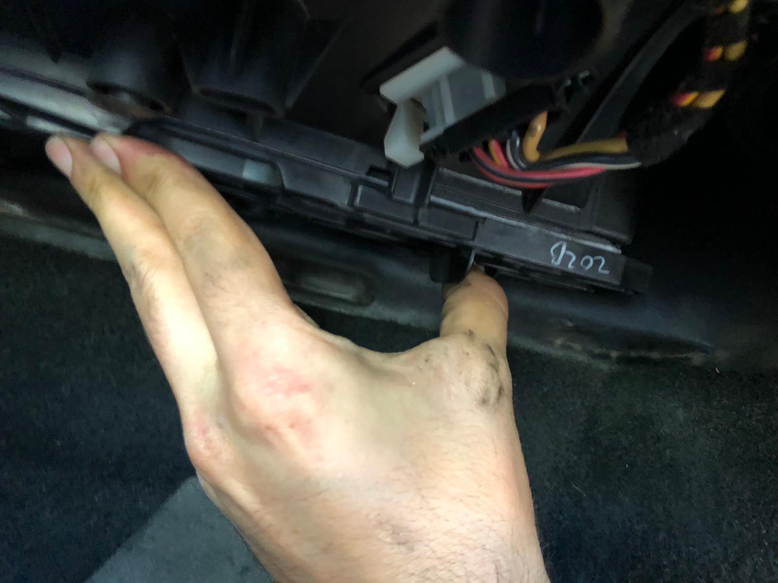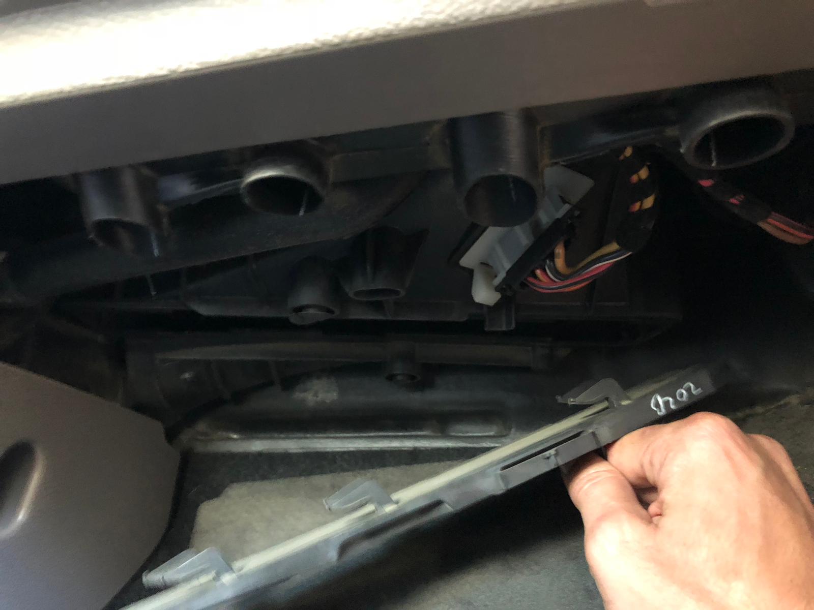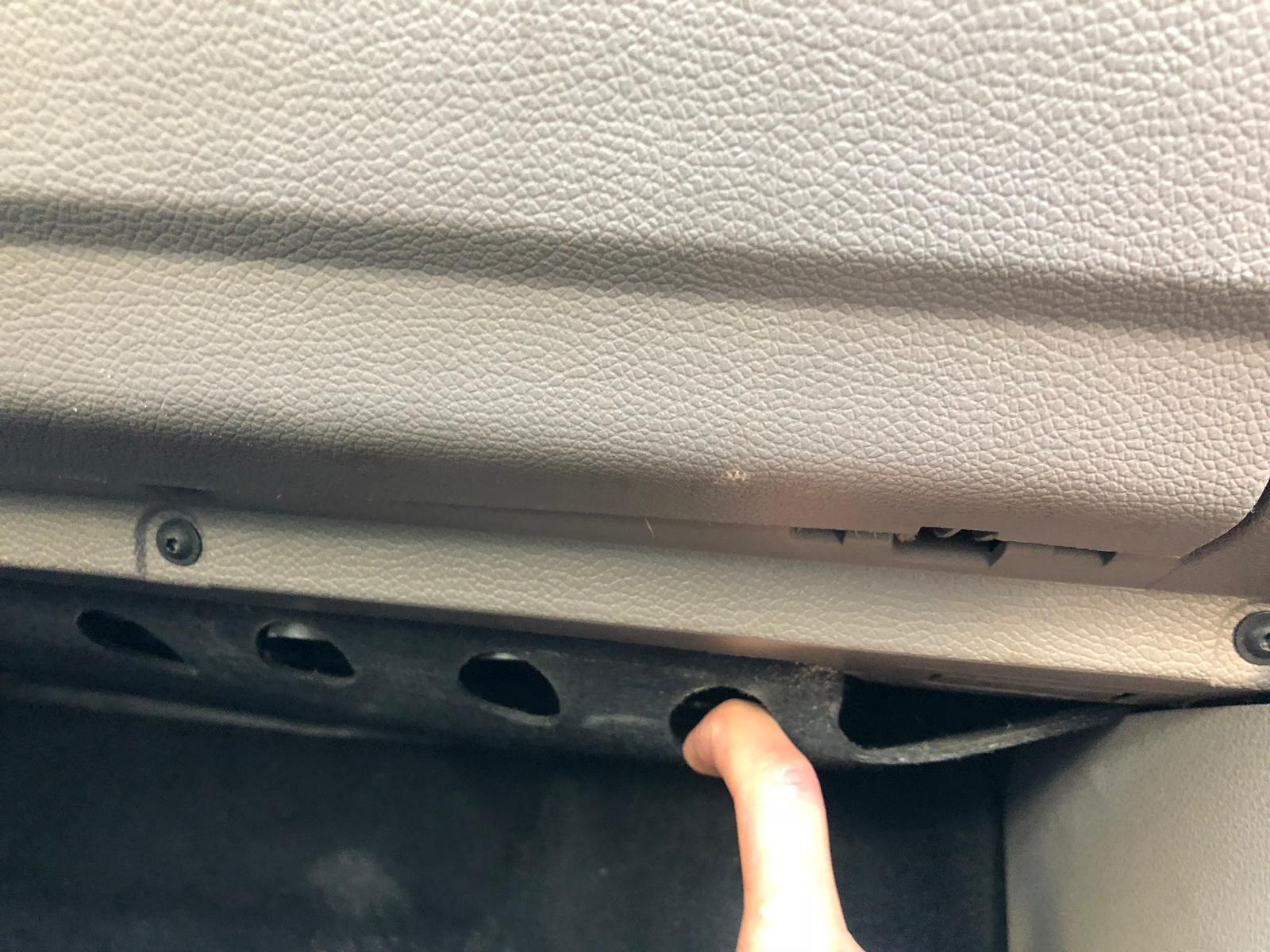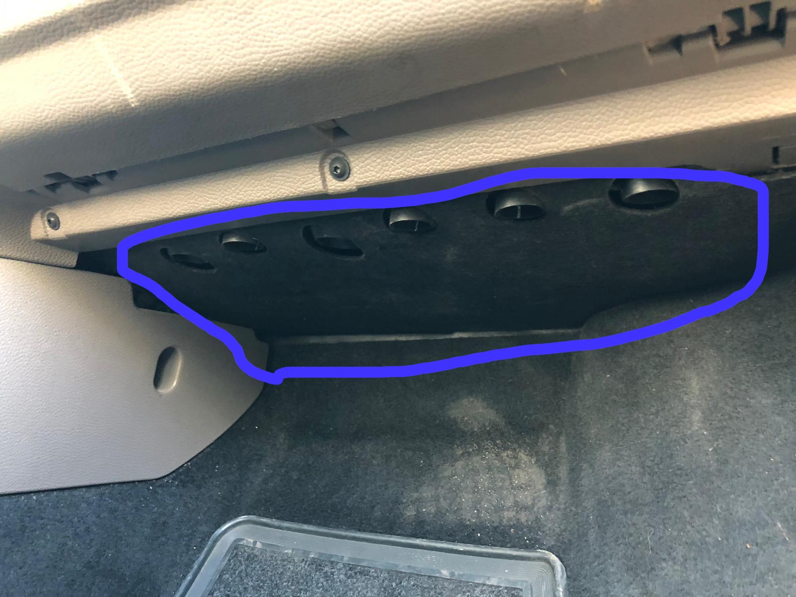 2. יש להוציא את הבד המכסה את האזור מתחת לתא הכפפות (מסומן בכחול):