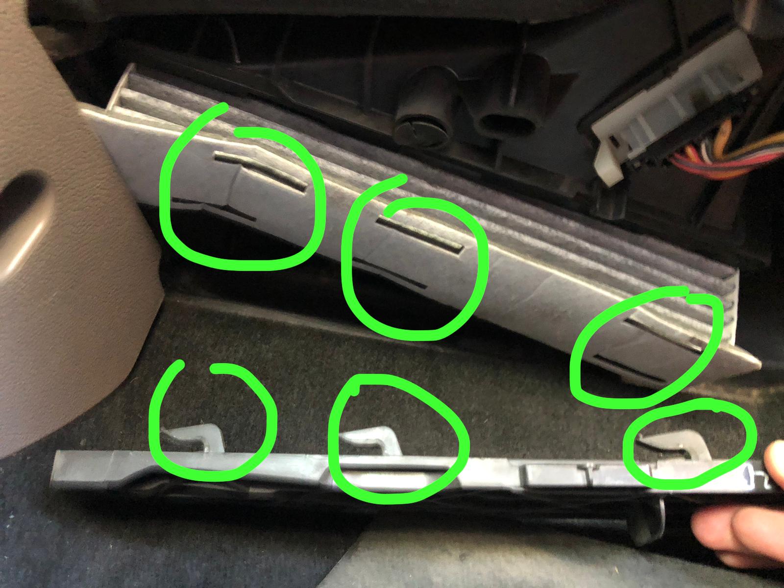 1. מסנן המזגן ממוקם מתחת לתא הכפפות בצד הנוסע.