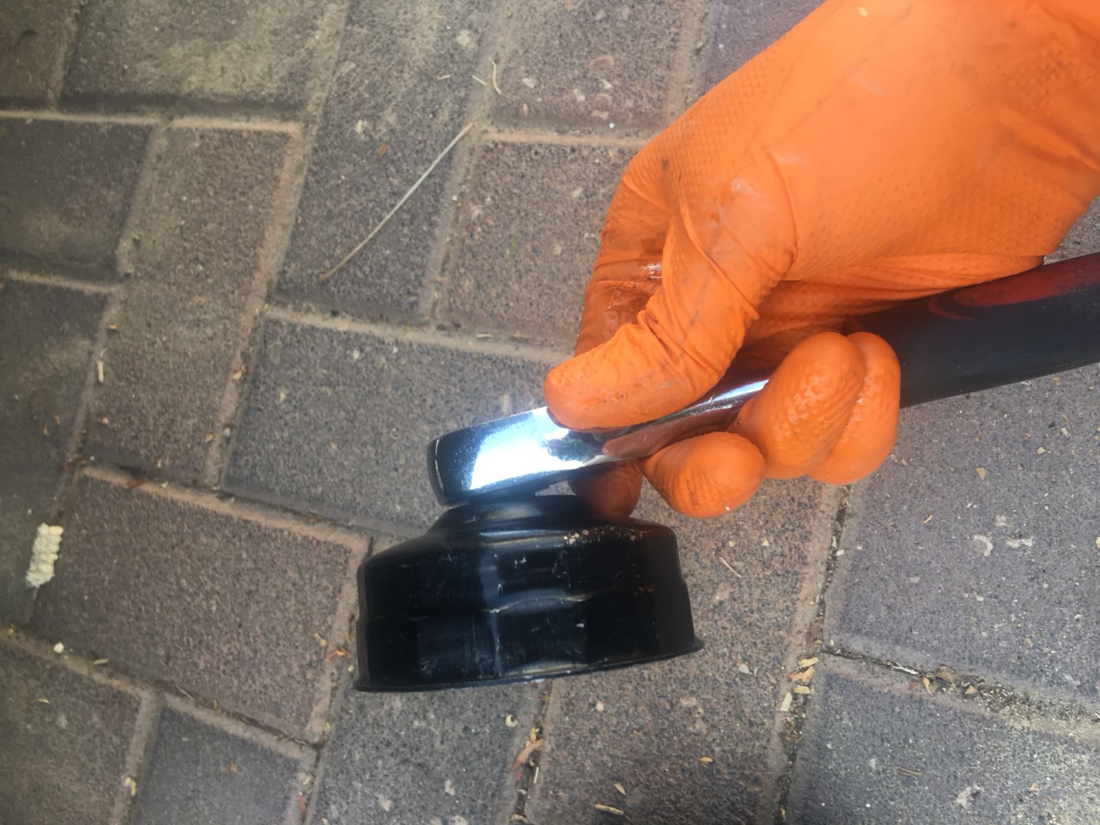 עדיף לפתוח קצת את הפילטר עם המפתח, ולאחר מכן להבריג אותו ידנית החוצה עם הבקבוק פלסטיק שחתכנו (כדי שינזול אליו השמן).