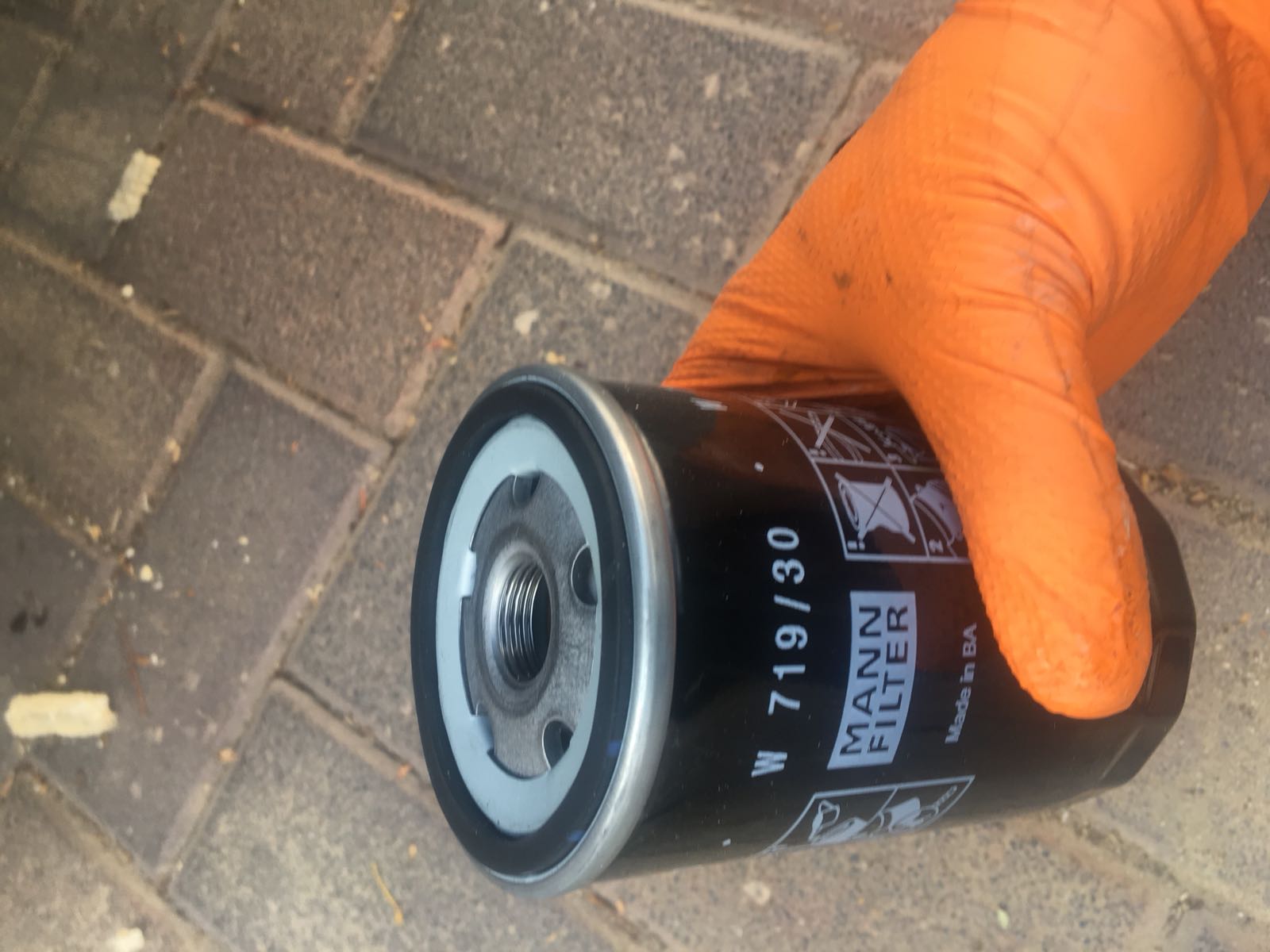 8. מילוי שמן בפילטר החדש (בערך עד החצי שלו), שימון הגומיה של הפילטר החדש והרכבתו בהברגה בבית הפילטר.