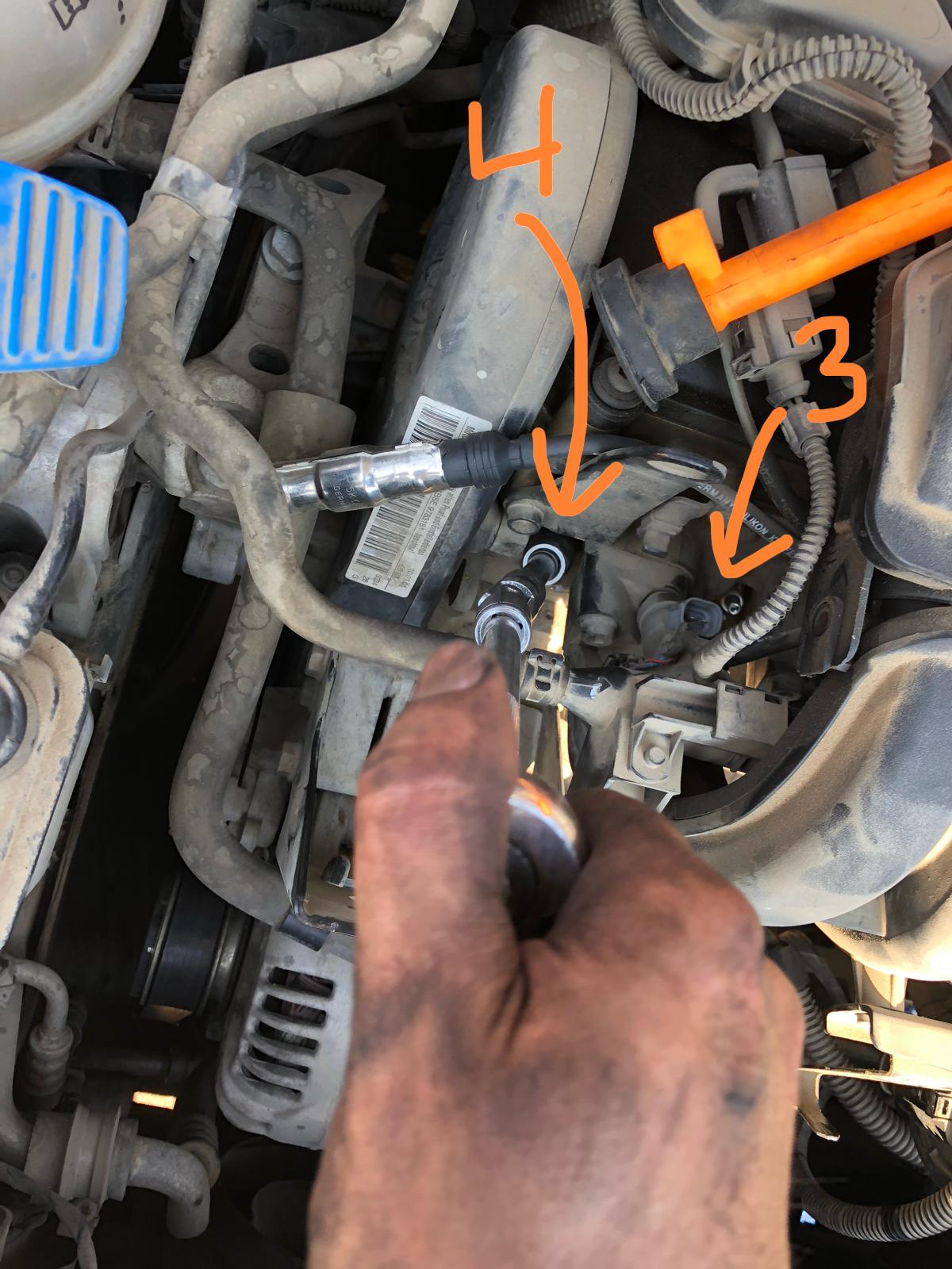 7. לאחר שליפת החוטים – ניתן לראות את הפלאגים. יש להבריג אותם החוצה ולהבריג בחזרה את החדשים באמצעות שימוש בידית 3/8+מאריך קצר/ארוך + מפרק ברך.