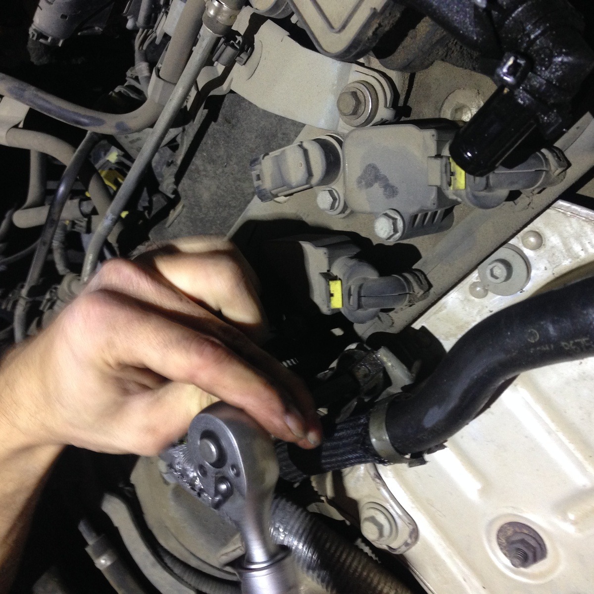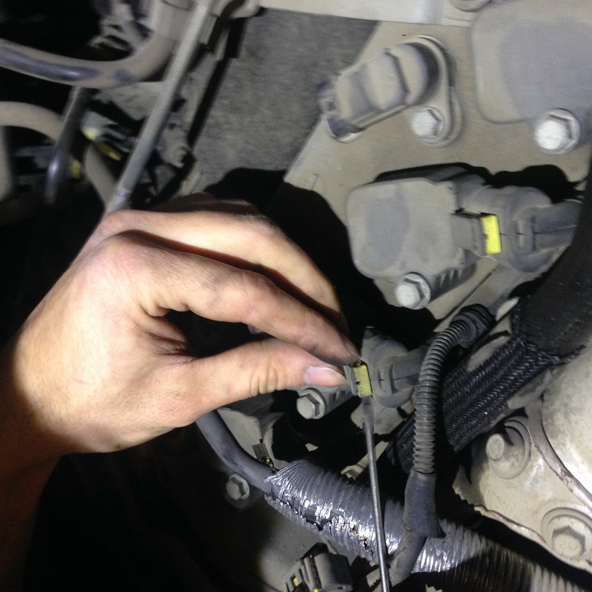 את הקונקטורים יש לשחרר בעדינות – 5 במספר – 1 לכל פלאג ו 1 נוסף למעלה ששייך לחיישן קאמשפט. שימו לב לשלוף בעדינות עם מברג שטוח את המנעול הצהוב מכל קונקטור לפני השחרור.