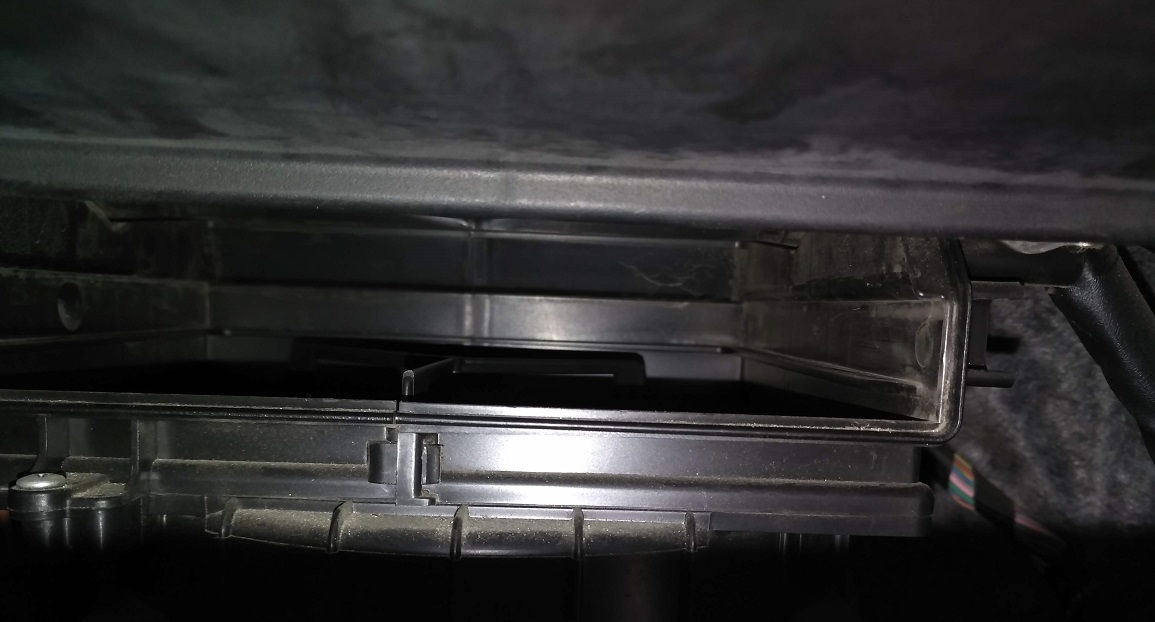 – נחזיר את תא הכפפות למיקומו הרגיל, נשעין אותו על הברכיים, נחזיר את התופסנים למקומם ונסגור את תא הכפפות