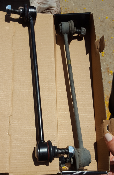 2 מוטות קישור חדשים(לרוב נחליף את שניהם ביחד, אבל אין חובה. יש גישה שאומרת שעל הרכיבים להיות בני אותו גיל על מנת לשמור על איזון ברכב, יש גישה שאומרת שאם אחד הלך השני בדרך גם). המוט הוחלף עקב קרע באטם שגומי שיושב על המפרק (לא ניתן לראות בתמונות).