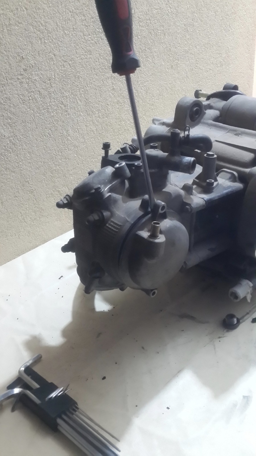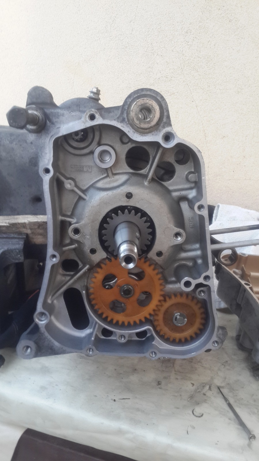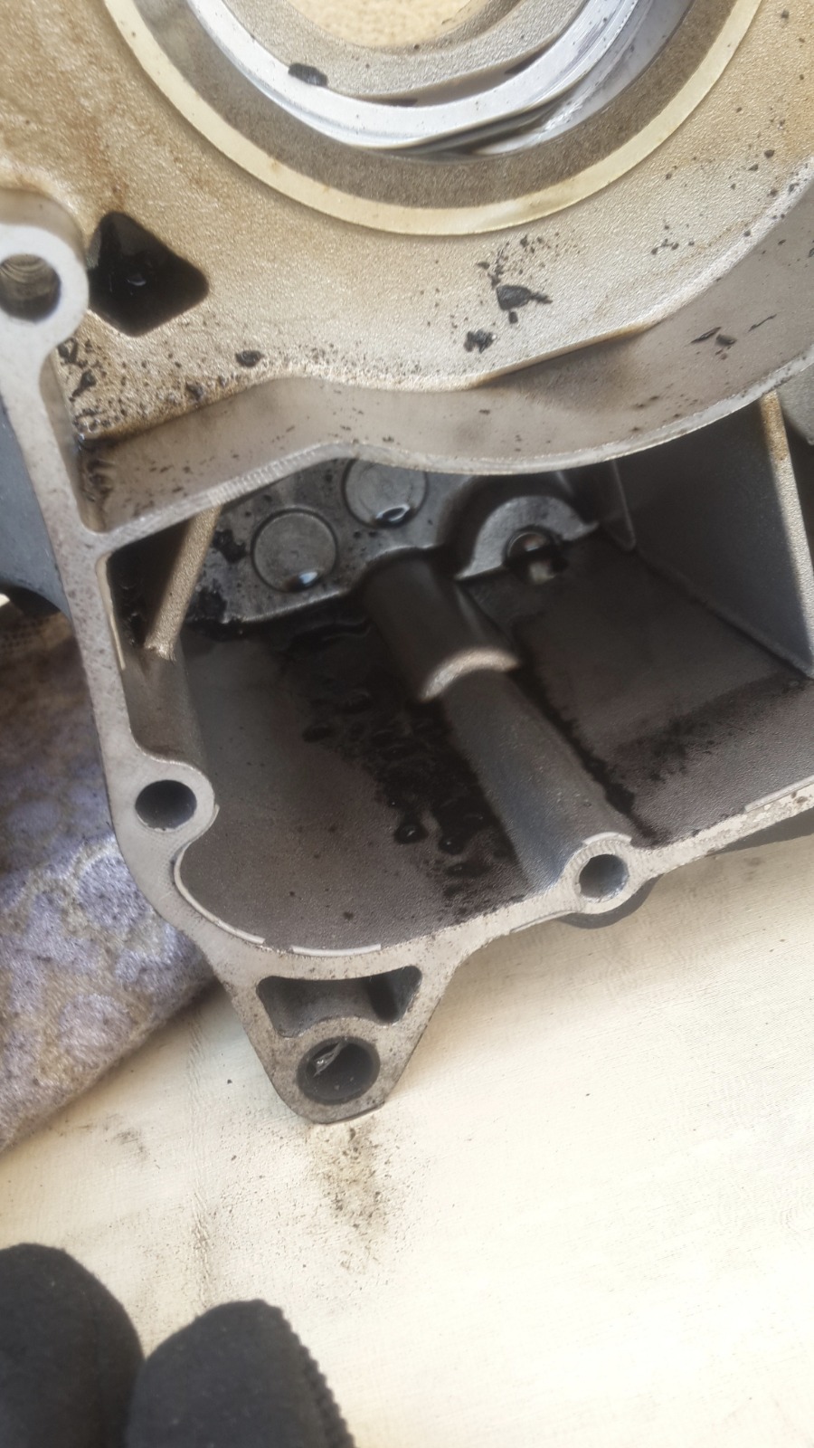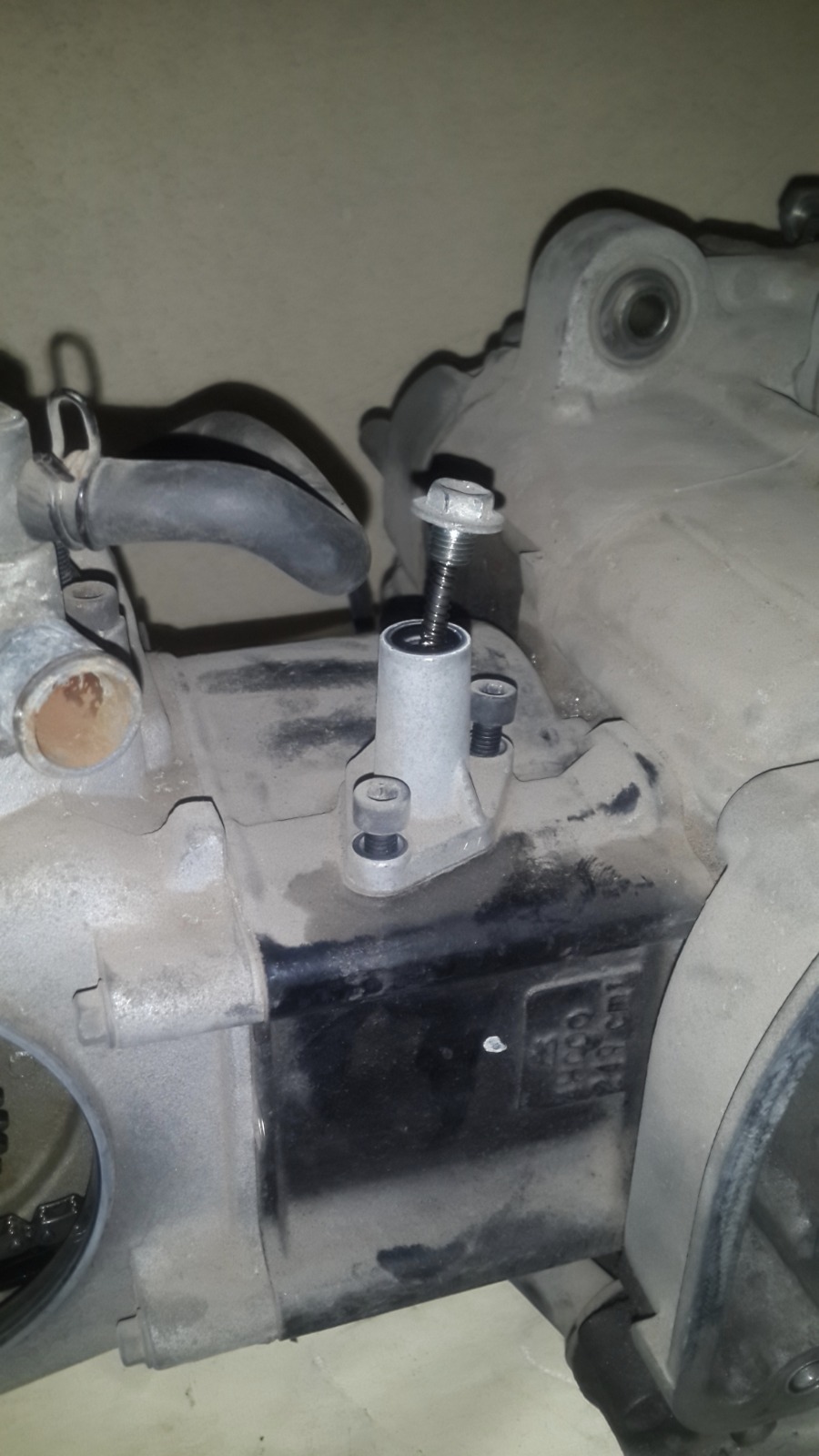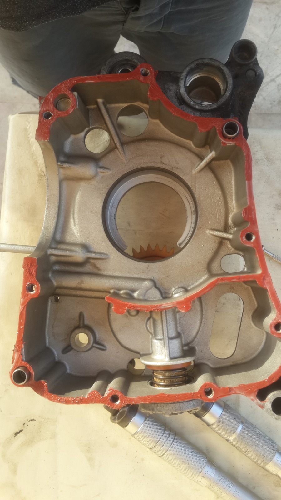 במנוע הזה אין אטם וההוראה היא לחומר אטימה שעולה 200 שקלים,מפאת עלות הכלי הסתפקנו בחומר אטימה שעלה 20 שקלים..אבל של loctite!