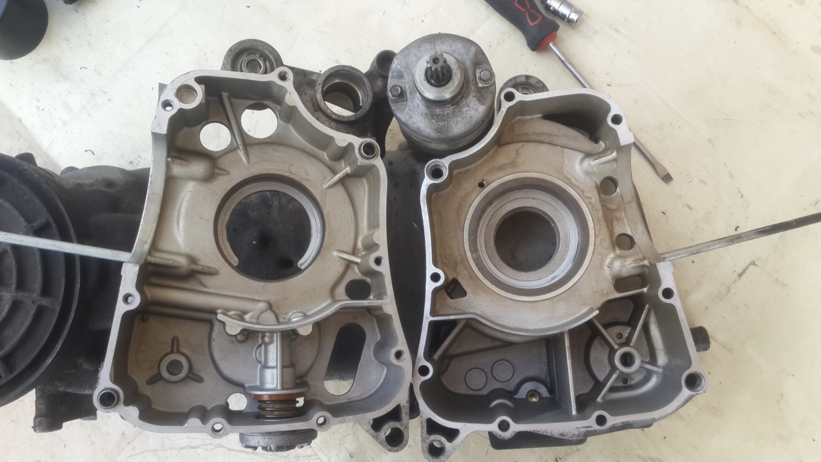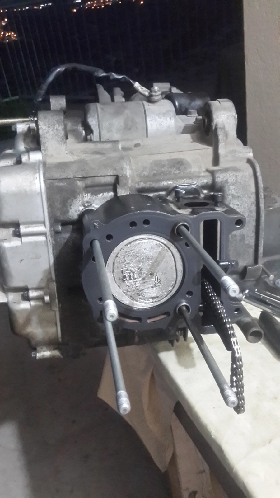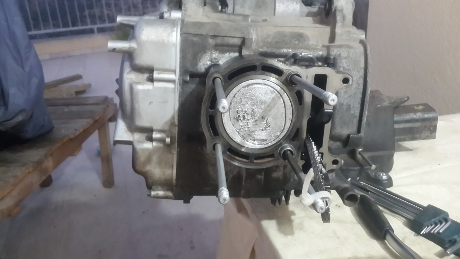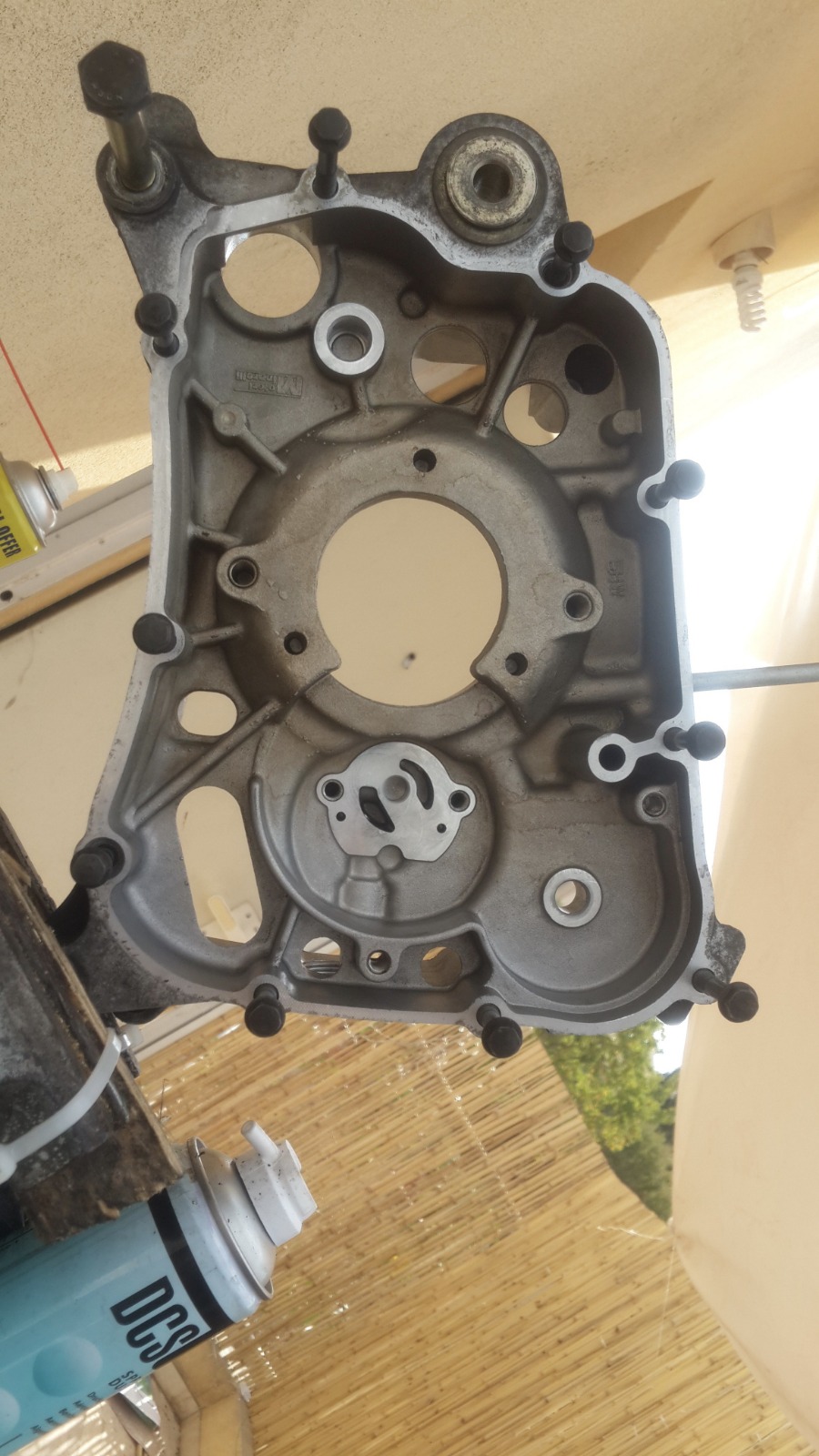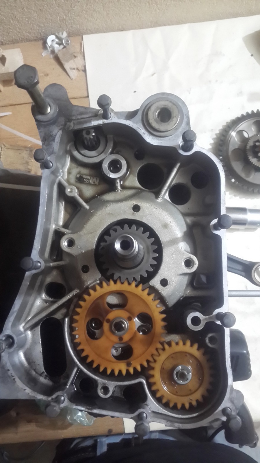 במנוע הזה אין אטם וההוראה היא לחומר אטימה שעולה 200 שקלים,מפאת עלות הכלי הסתפקנו בחומר אטימה שעלה 20 שקלים..אבל של loctite!