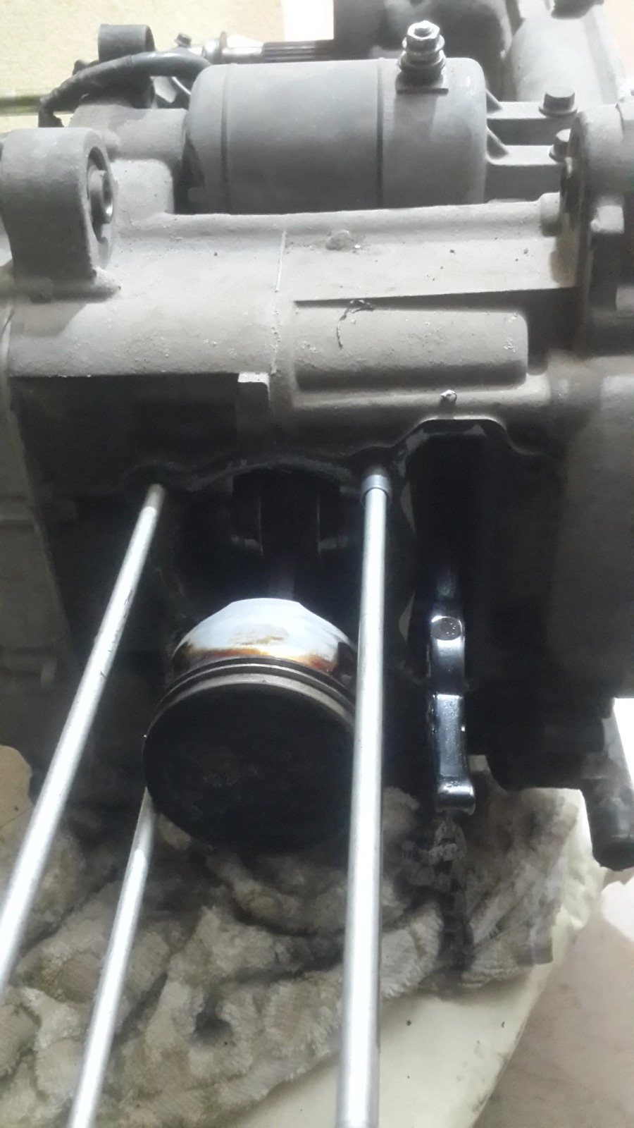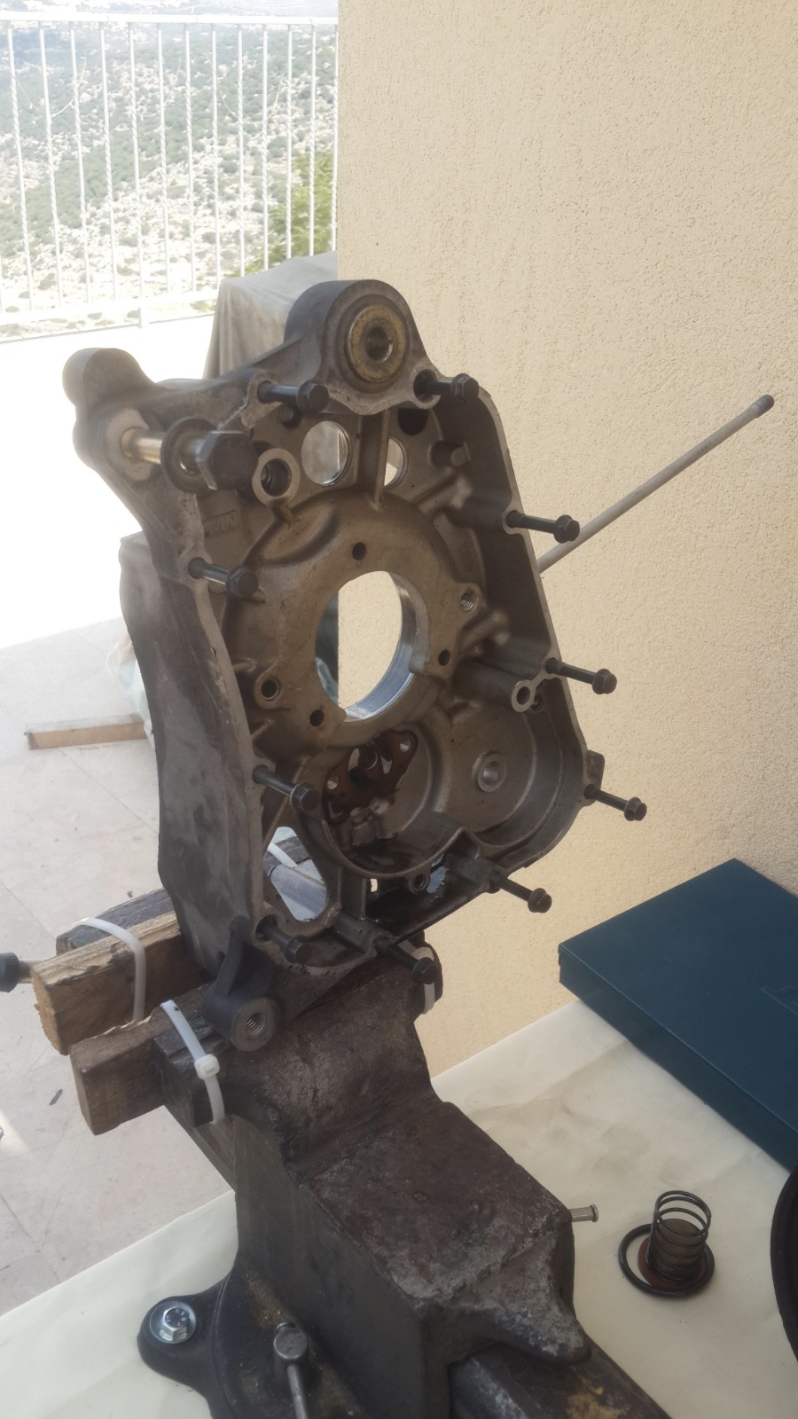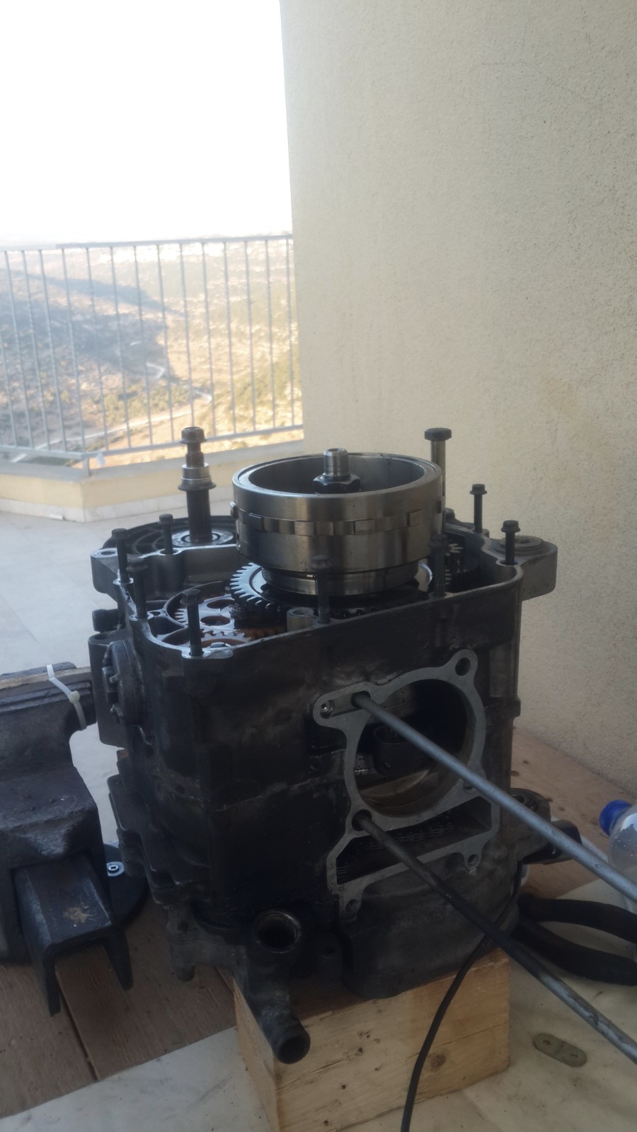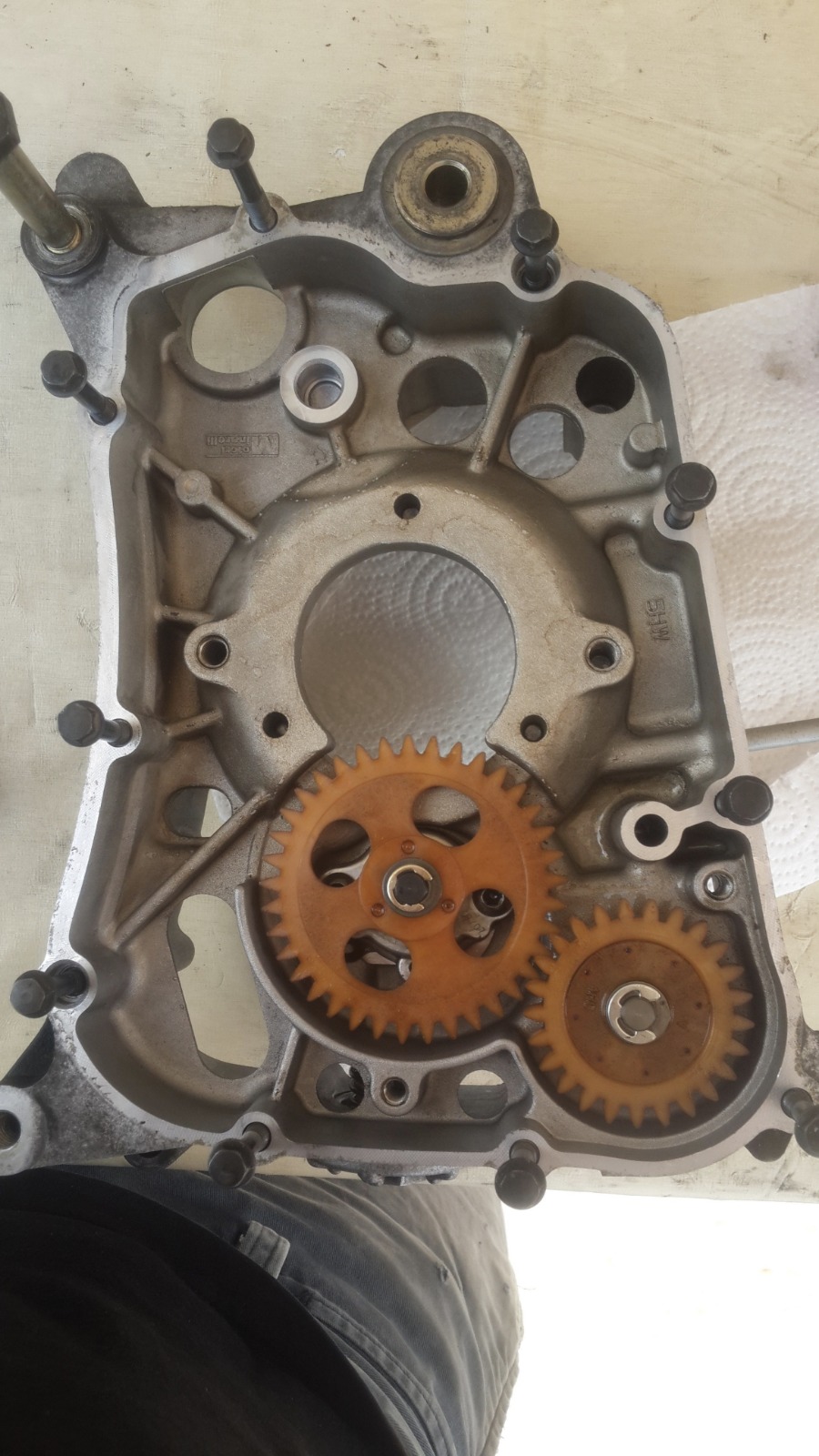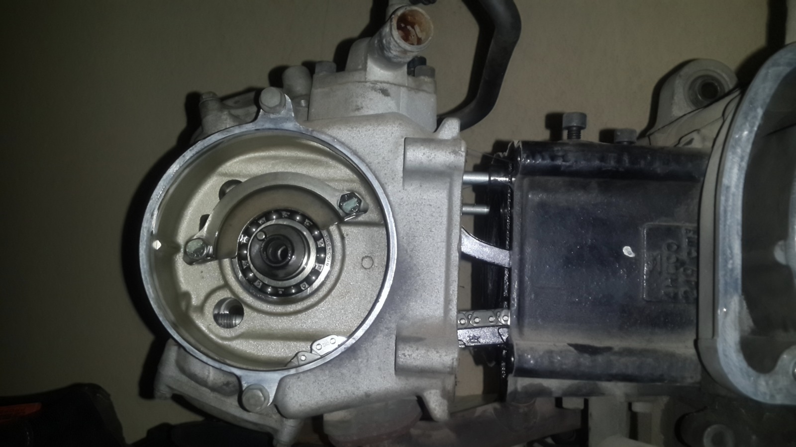 במנוע הזה אין אטם וההוראה היא לחומר אטימה שעולה 200 שקלים,מפאת עלות הכלי הסתפקנו בחומר אטימה שעלה 20 שקלים..אבל של loctite!
