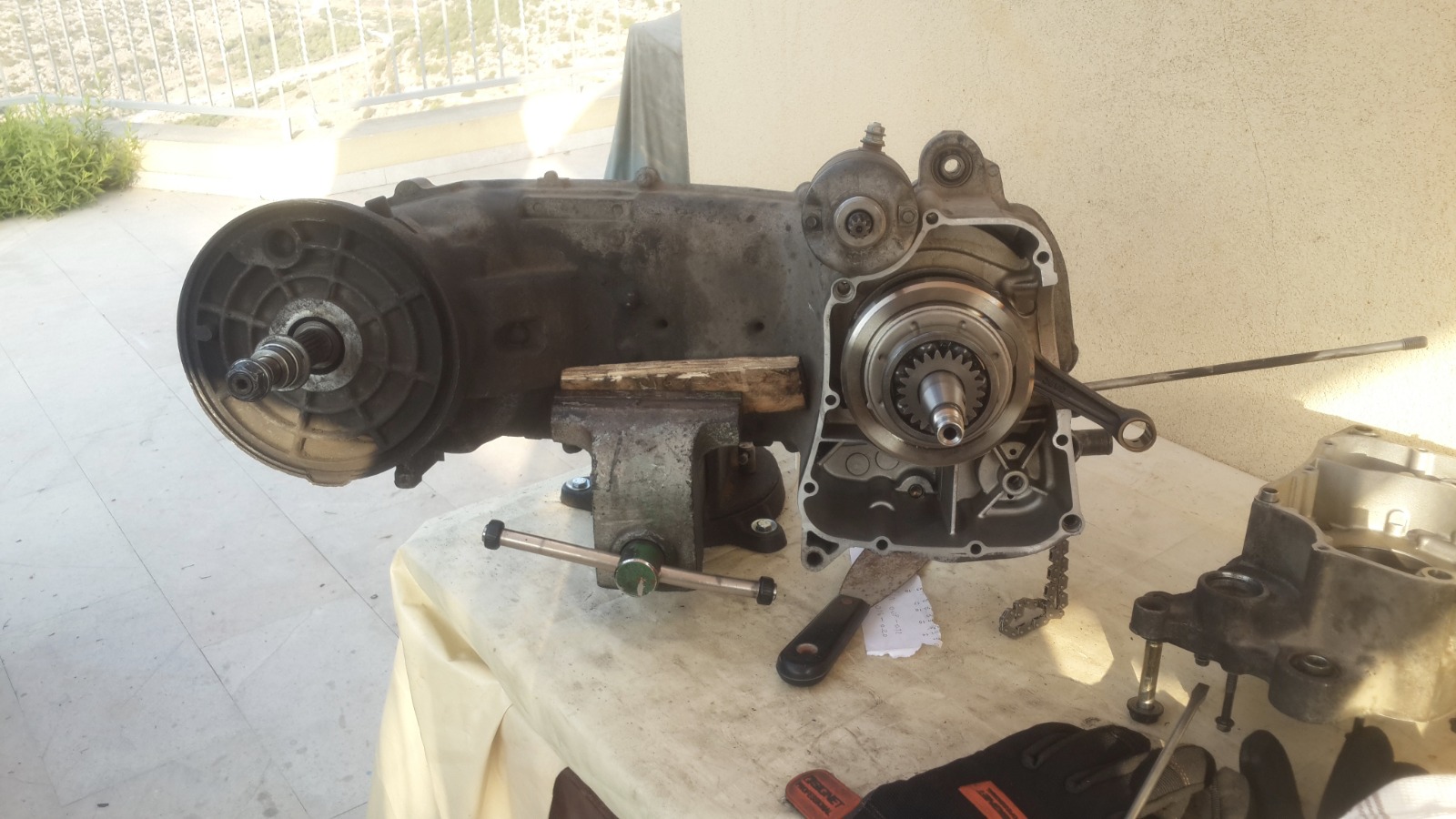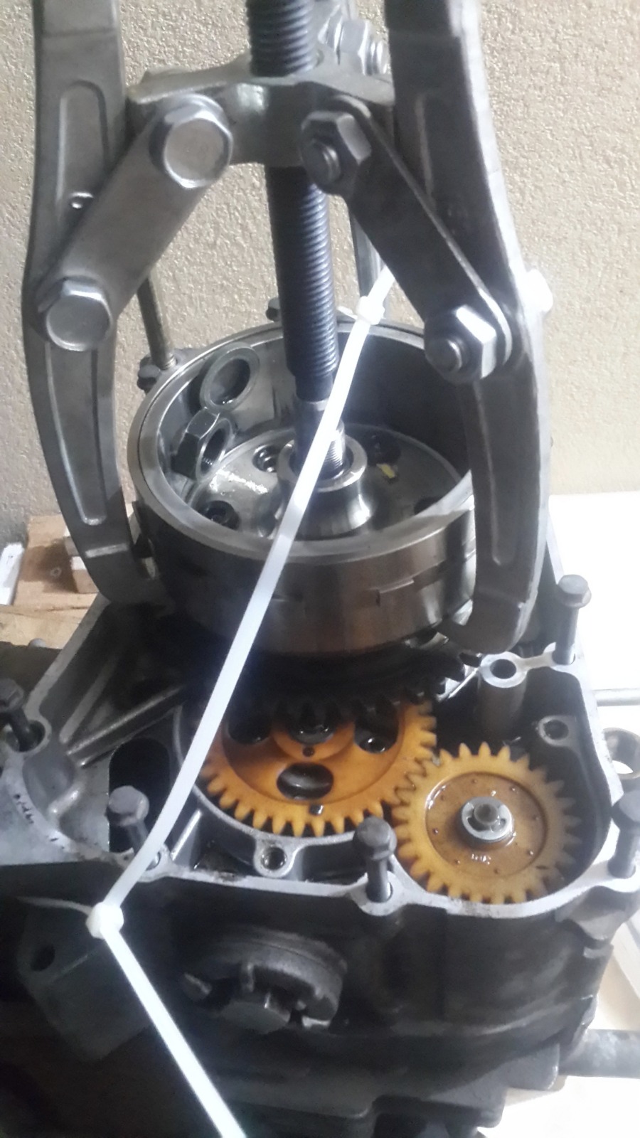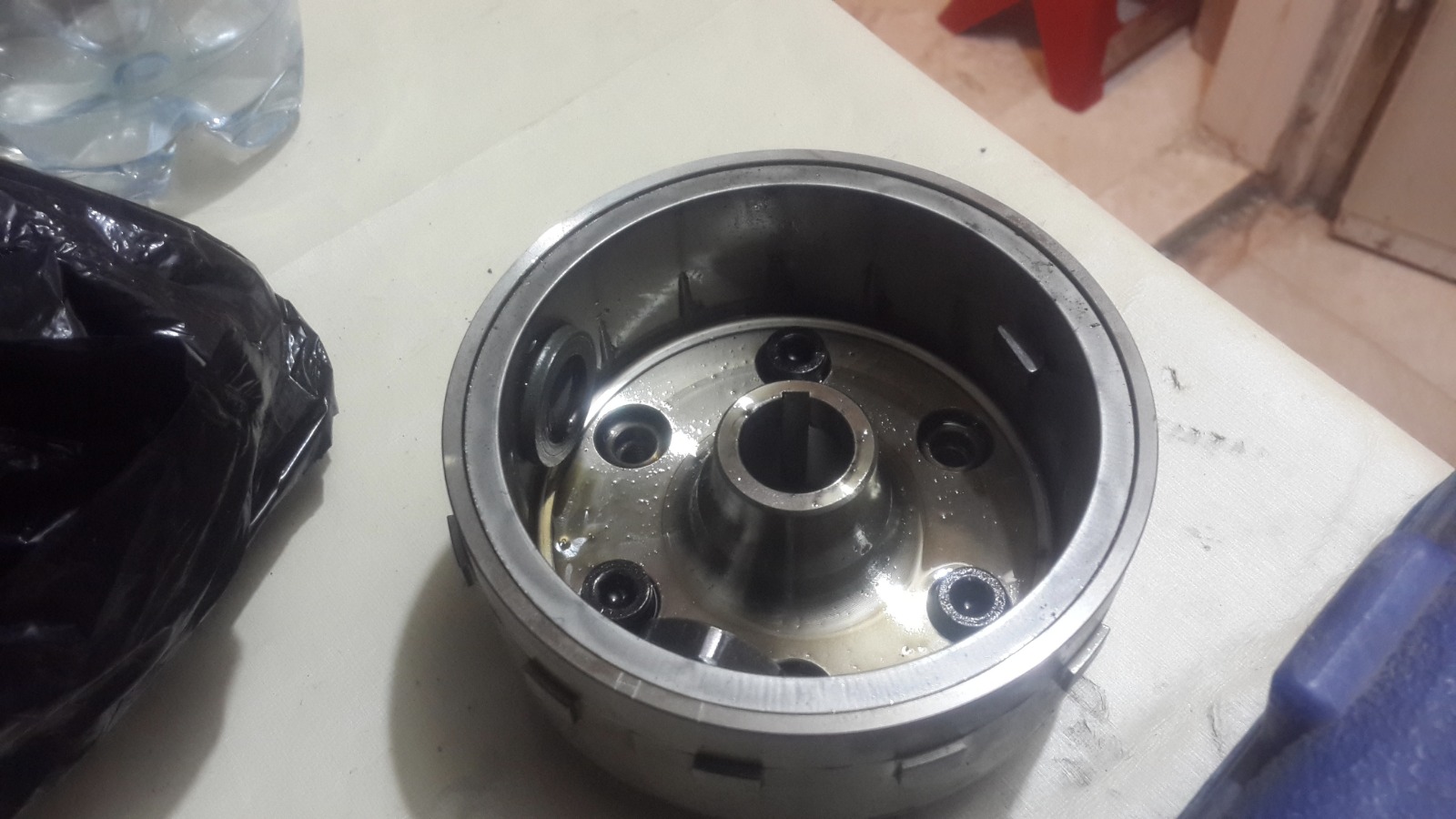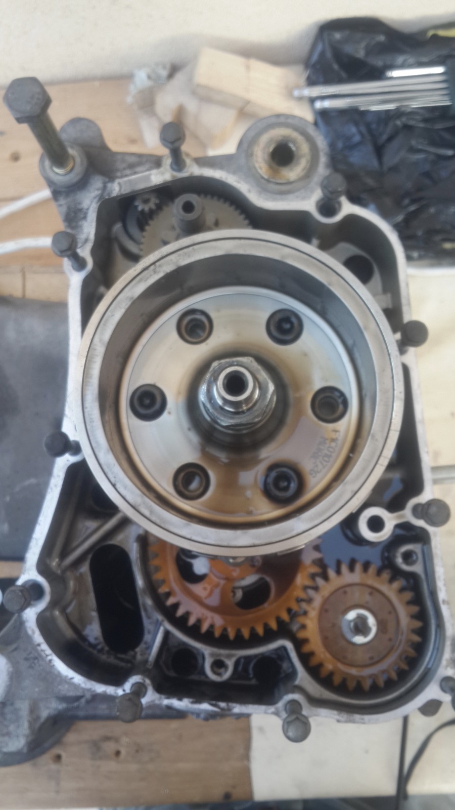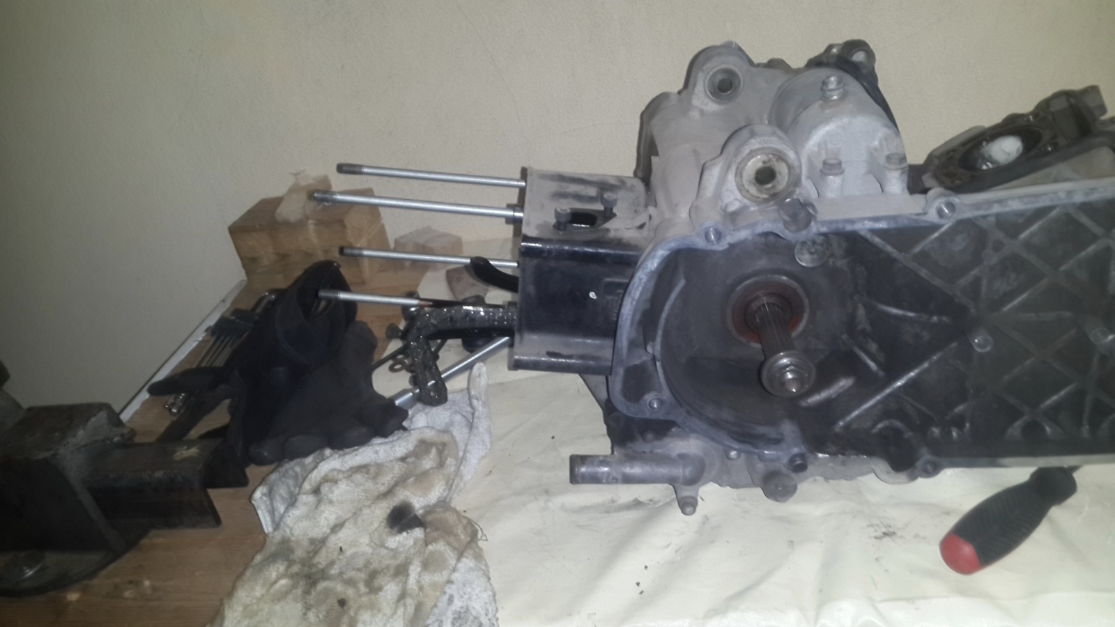 במנוע הזה אין אטם וההוראה היא לחומר אטימה שעולה 200 שקלים,מפאת עלות הכלי הסתפקנו בחומר אטימה שעלה 20 שקלים..אבל של loctite!