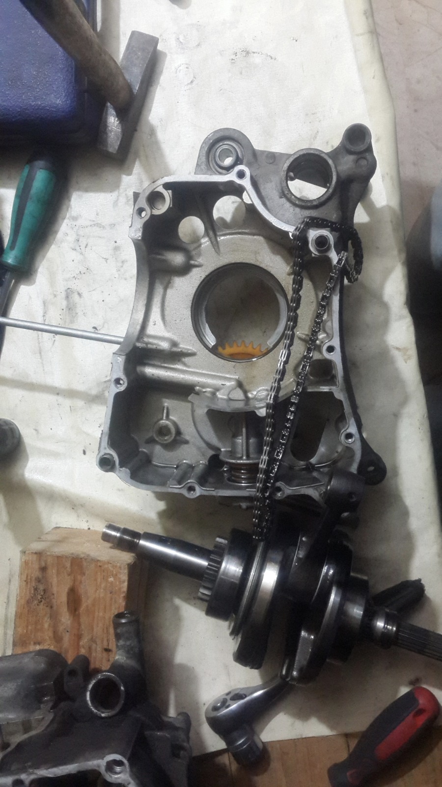 מסירים את משאבת השמן מהקייס הקטן ומתחילים לנקות