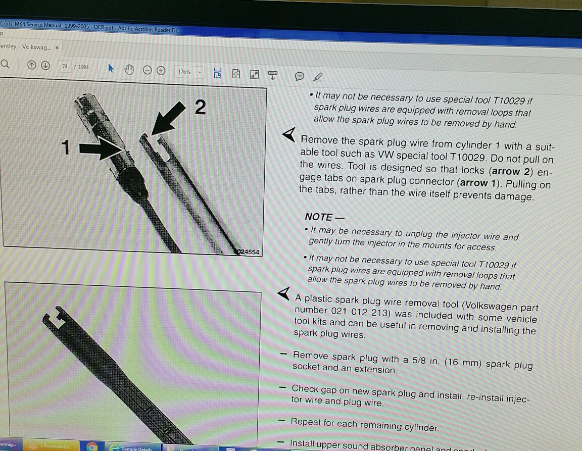 כלי ייעוד לשליפת חוטי הצתה ולהתקנתם למונע 2 ליטר של VW (הוזמן מעל אקספרס)